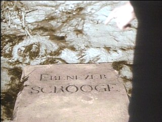 Scrooge crept towards it, trembling as he went; and following the finger, read upon the stone of the neglected grave his own name,